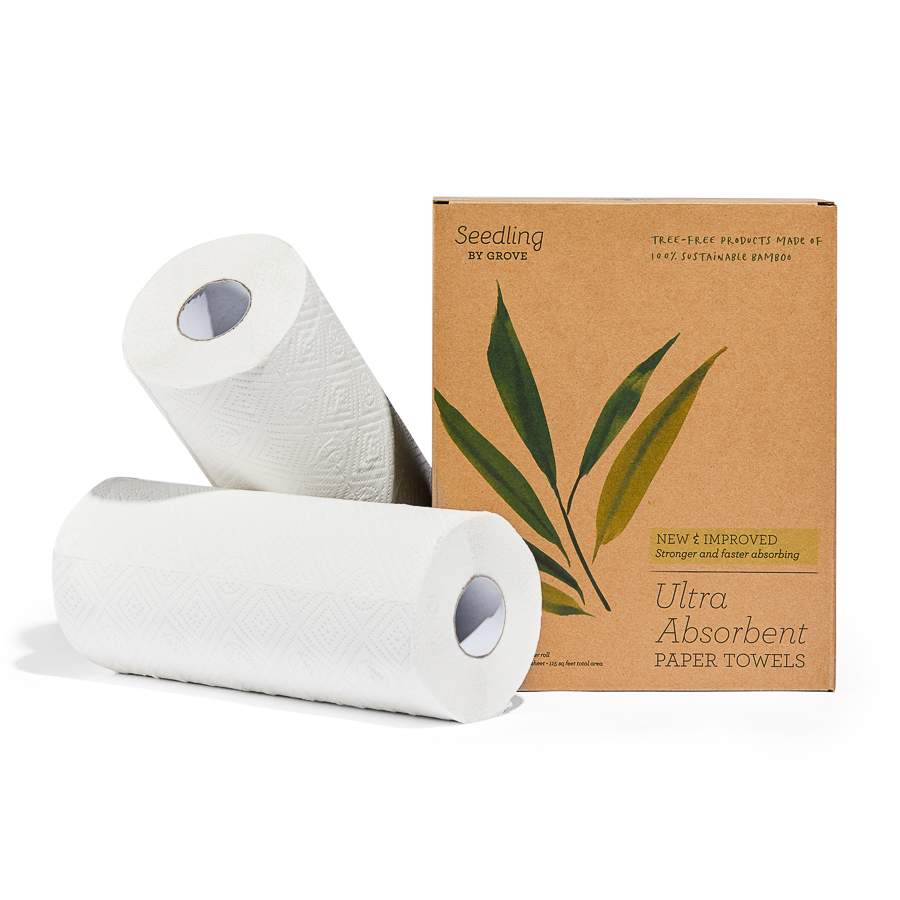 In these circumstances we use Seedling by Grove Jumbo Roll Tree-Free Paper Towels. Like their bathroom paper, the 2-ply paper towels are made out of 100% bamboo and their packaging is plastic free, totally recyclable and made out of 100% recycled materials. Each Seedling order helps fund tree planting by the Arbor Day Foundation.